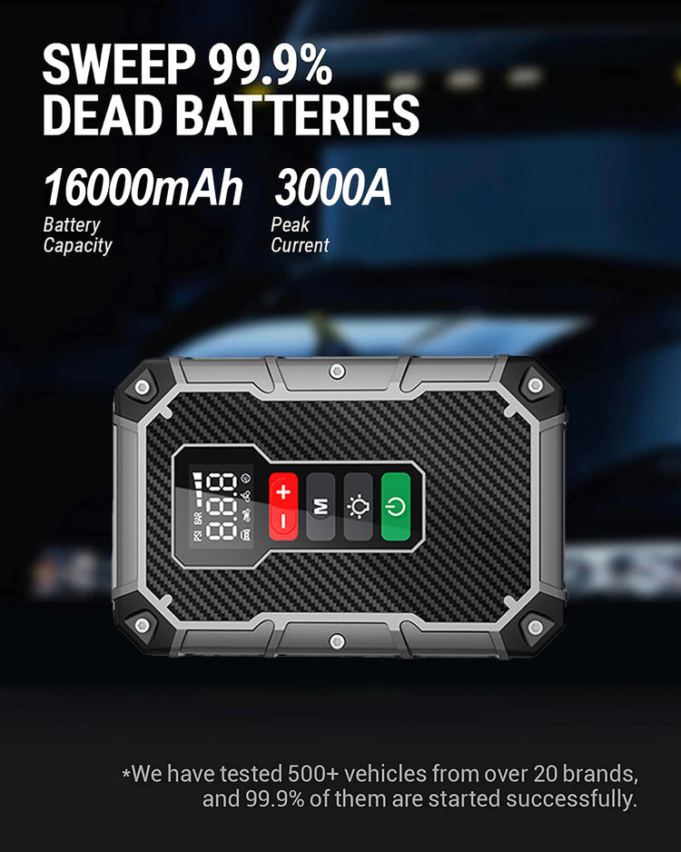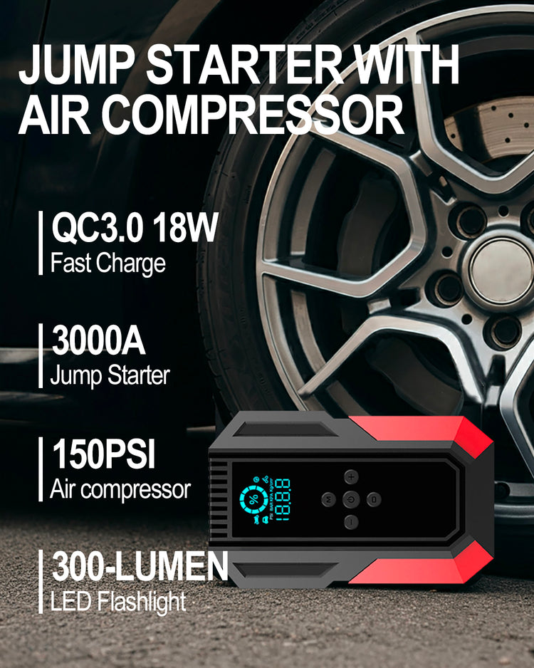 I'm very happy to have the jump starter with air compressor. I haven't needed to use it as yet,but it stores in my boot in its protective case very conveniently.